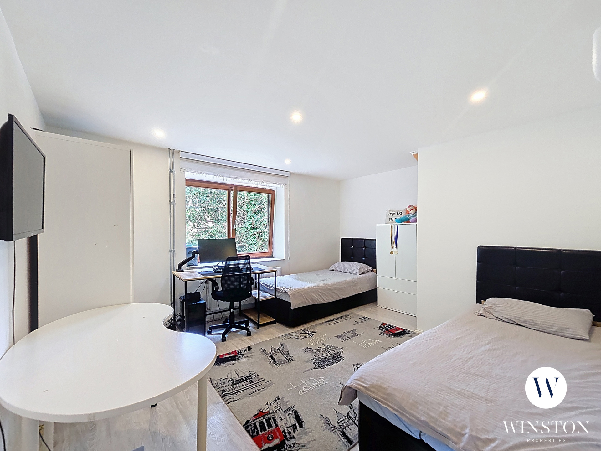 Située dans un quartier calme et verdoyant, à proximité des transports (gare de Haren, bus, tram), commerces, écoles et grands axes, cette belle maison 3 façades de ±190m² vous séduira par ses volumes, sa luminosité et ses extérieurs généreux.